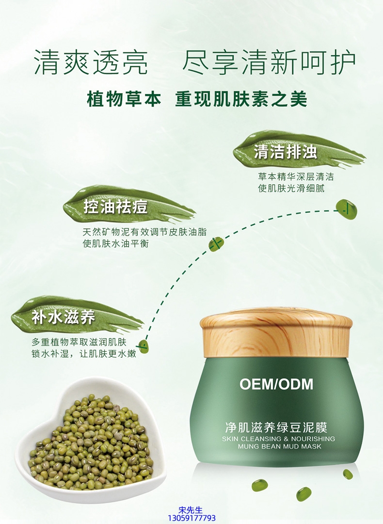 碧素堂_泥膜深层清洁补水保湿绿豆泥膜 泥膜oem/OEM加工贴牌